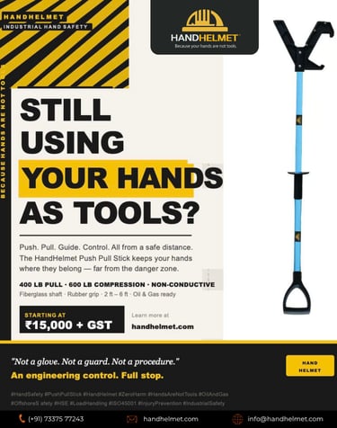 Stop using hands as tools in industrial work. Learn how the HandHelmet Push Pull Stick improves hand safety, prevents injuries, and ensures safer load handling with engineering control solutions.